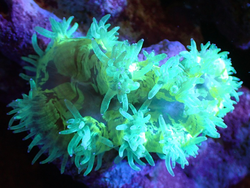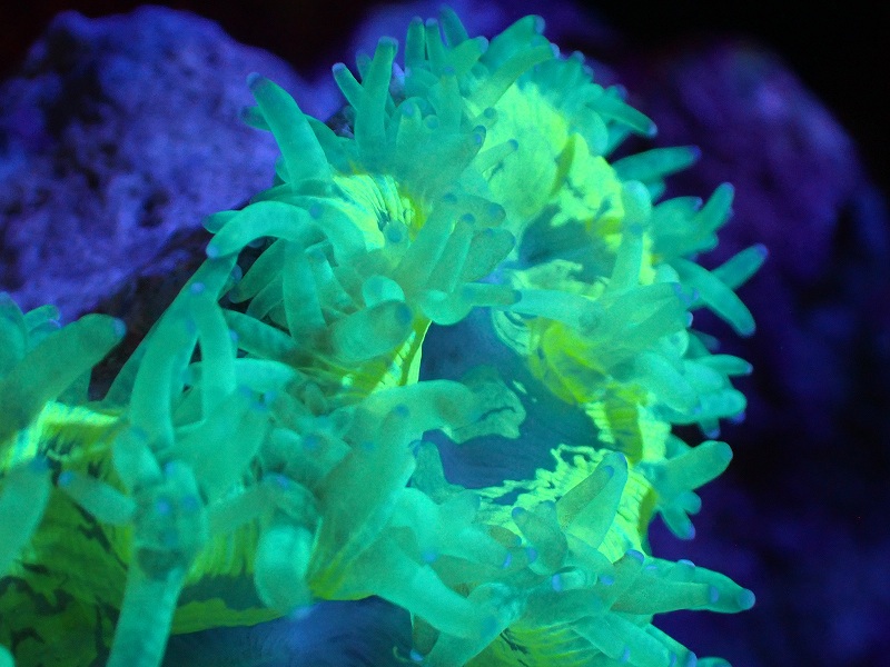 【送料無料対象商品】【サンゴ】【通販】トランペットコーラル(Metallic Green/ブルーチップ)SMサイズ(個体販売)(±9cm)No.13(生体)(サンゴ)