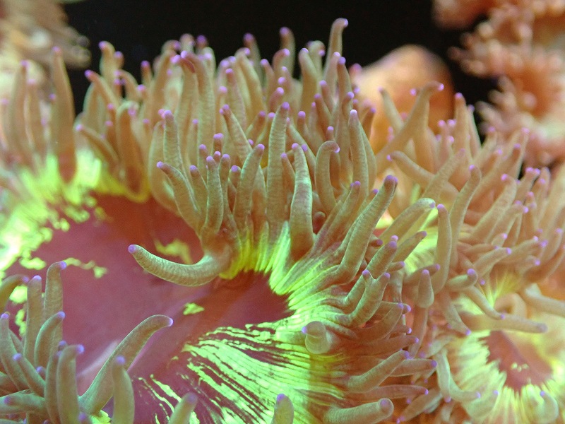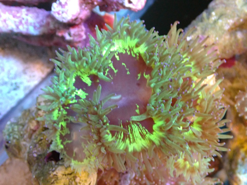 【送料無料対象商品】【サンゴ】【通販】トランペットコーラル(Metallic Green/パープルチップ)Mサイズ(個体販売)(±11cm)No.14(生体)(サンゴ)