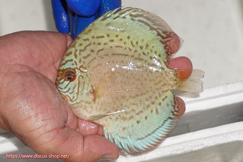 青系ディスカスの王道ブリリアントの中でもこれほど発色良くバランスが良い個体は早々おらずフォルム良し、発色良しと文句なしの個体と言えます。今後よりその青みは増しパターンも相まって変化してゆくので非常に楽しみある個体です。