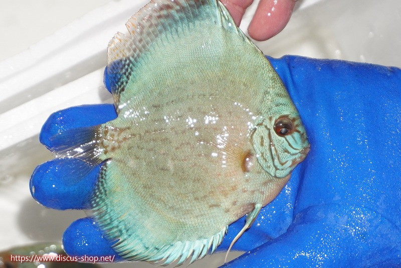 青系ディスカスの王道ブリリアントの中でもこれほど発色良くバランスが良い個体は早々おらずフォルム良し、発色良しと文句なしの個体と言えます。今後よりその青みは増しパターンも相まって変化してゆくので非常に楽しみある個体です。