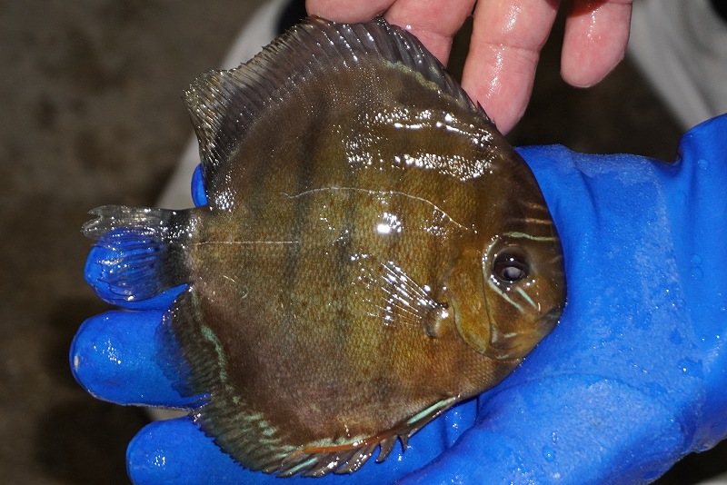グリーンディスカスらしからぬ美しいラウンドボディ、きめ細やかな鱗、上品なパウダーグリーンが特徴的なアマゾン川最上流域ペルーで採集されるグリーンディスカス。