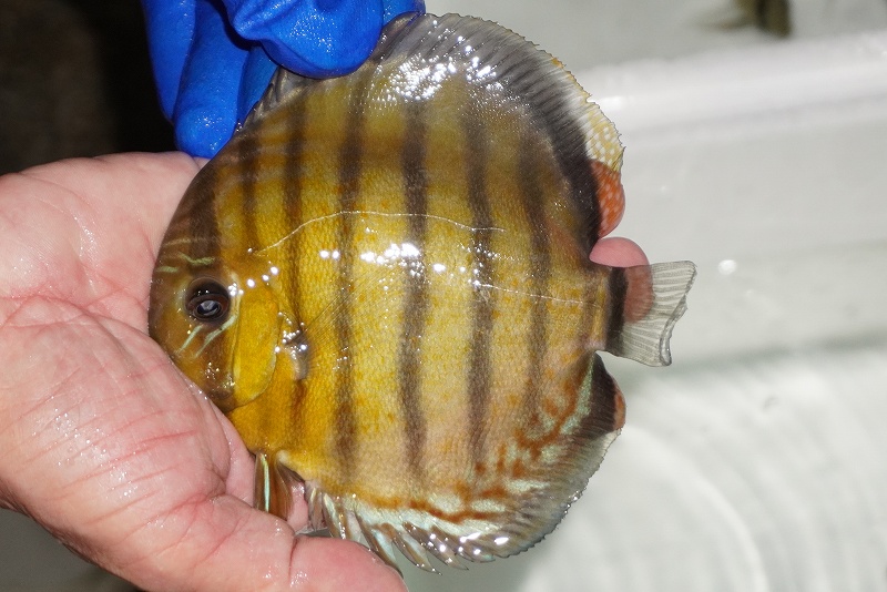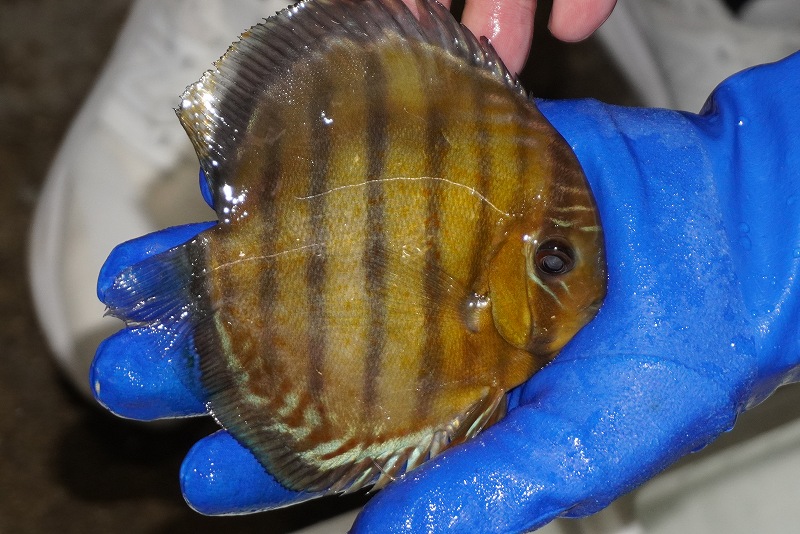 グリーンディスカスらしからぬ美しいラウンドボディ、きめ細やかな鱗、上品なパウダーグリーンが特徴的なアマゾン川最上流域ペルーで採集されるグリーンディスカス。