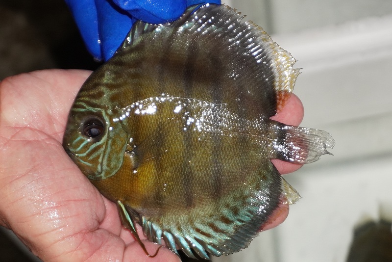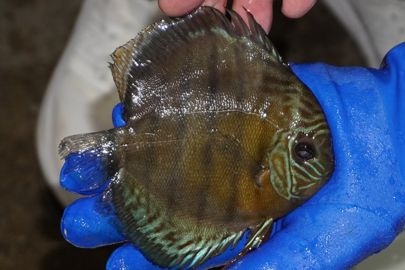 グリーンディスカスらしからぬ美しいラウンドボディ、きめ細やかな鱗、上品なパウダーグリーンが特徴的なアマゾン川最上流域ペルーで採集されるグリーンディスカス。