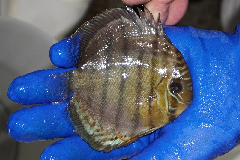 グリーンディスカスらしからぬ美しいラウンドボディ、きめ細やかな鱗、上品なパウダーグリーンが特徴的なアマゾン川最上流域ペルーで採集されるグリーンディスカス。