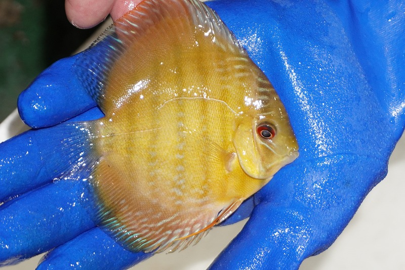 イエローベースが美しいソリッド、ソリッドセンターバー、ロイヤルブルーが混生するウラリアチャンネルに絡む有名産地。 きめ細かな鱗からの上品な発色、ロイヤル個体の明瞭なラインパターン、千差万別の個体差はワイルドディスカスの魅力を存分に持ち合わせた個体といえます。