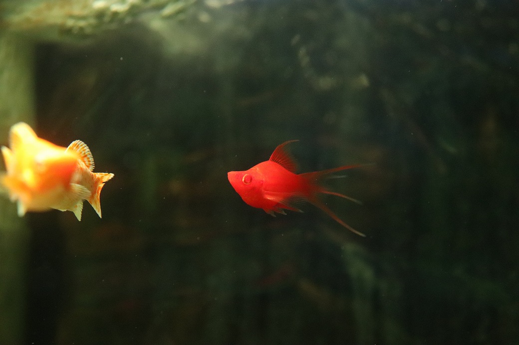めちゃくちゃ変わったルビーアイタンジェリンが入荷しました。また本種は尾が3本になっているフォークテールとなります。成長とともにどのように尾が変化するかわかりませんが、現段階ではなかなか面白い個体となります。入荷数も少ないので是非在庫のある時に!!