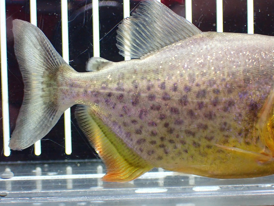 イエローピラニアの中でも最も流通量の少ない激レアピラニアが入荷です。ピラニアは臆病というのはよく聞く話ですが、本種は違うようで、かなり獰猛でカッコイイピラニアとなります。人工飼料も食べるようになりますが、生き餌を追いかけている姿も見たいもんですね!!入荷頻度が少ない種となりますので、是非在庫のある時に!!写真の個体をお送り致します。