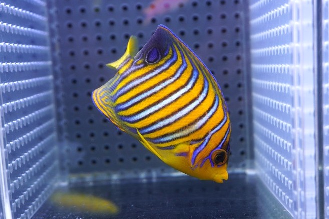 【海水魚・ヤッコ】【通販】人工飼料OK♪【モルディブ産】インドニシキヤッコ(S)(個体販売)(±7cm) No.22(生体)(海水魚)