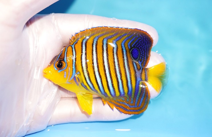 【海水魚・ヤッコ】【通販】状態良好♪【モルディブ産】インドニシキヤッコ(SM)(個体販売)(±8.5cm) No.25(生体)(海水魚)