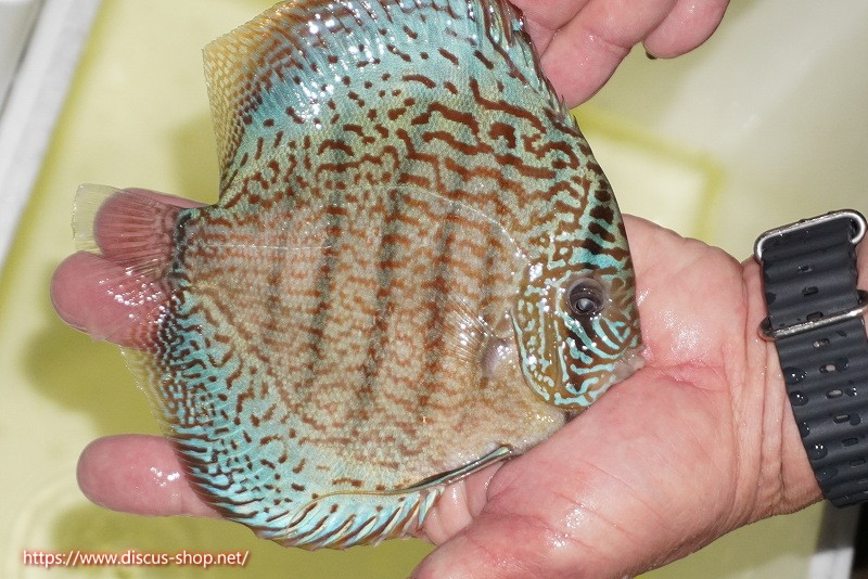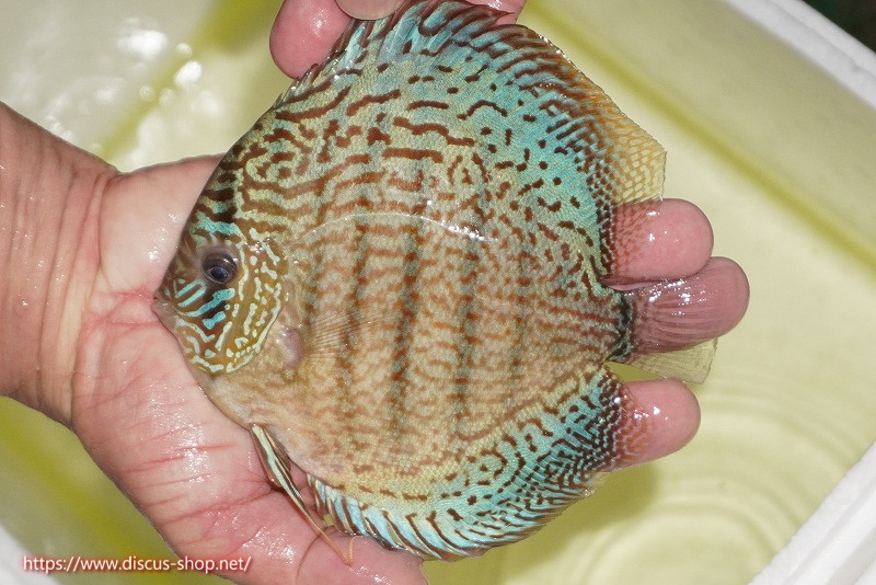 理想的なフォルムと鮮やかなレッドスポット、ブルーの発色を持つこれ以上ないスポット系ディスカス。名の通り迷路のような複雑なスポットラインを持つ品種です。