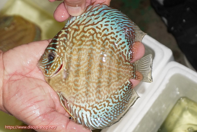 理想的なフォルムと鮮やかなレッドスポット、ブルーの発色を持つこれ以上ないスポット系ディスカス。名の通り迷路のような複雑なスポットラインを持つ品種です。