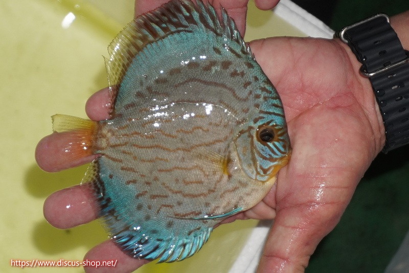 【ディスカス】【通販】リフレクションDコバルト(ハイフォーム ラインパターン)【個体販売】12cm(生体)マレーシア NAディスカスファーム [ab01-51128320]
