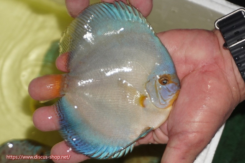フルカラータイプのソリッド系コバルトブルーターコイズ。肉厚な体型と古き良き品種らしさを残すブラックアーチがトラディショナル感を持つ。青系ディスカスの人気種と言えます。