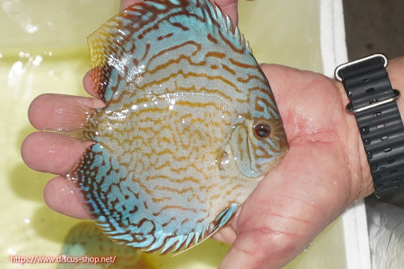 青系ディスカスの王道ブリリアントの中でもこれほど発色良くバランスが良い個体は早々おらずフォルム良し、発色良しと文句なしの個体と言えます。今後よりその青みは増しパターンも相まって変化してゆくので非常に楽しみある個体です。