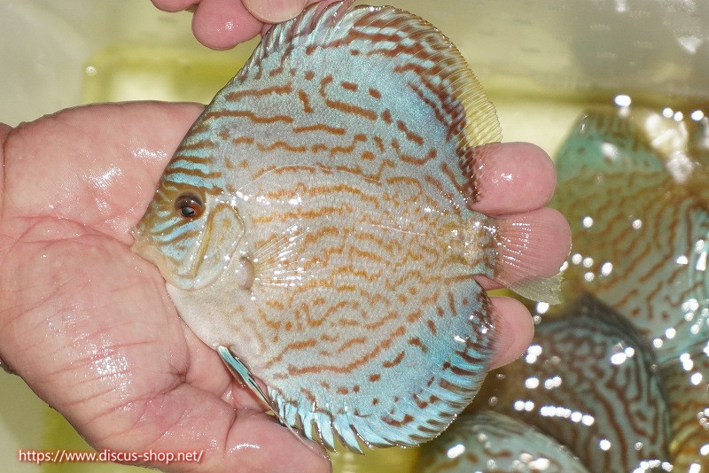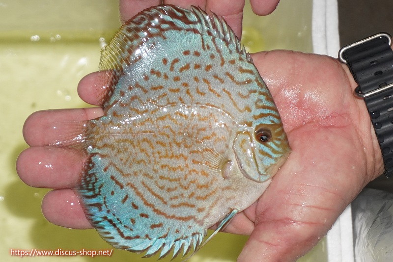 青系ディスカスの王道ブリリアントの中でもこれほど発色良くバランスが良い個体は早々おらずフォルム良し、発色良しと文句なしの個体と言えます。今後よりその青みは増しパターンも相まって変化してゆくので非常に楽しみある個体です。