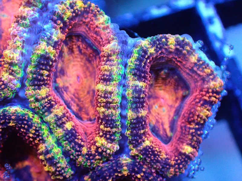 【サンゴまとめ買い割引き10%〜20%OFF対象商品】【サンゴ】【通販】【オーストラリア産】カクオオトゲキクメイシ(Ultra/Special Rainbow)(個体販売)No.1(生体)(サンゴ)