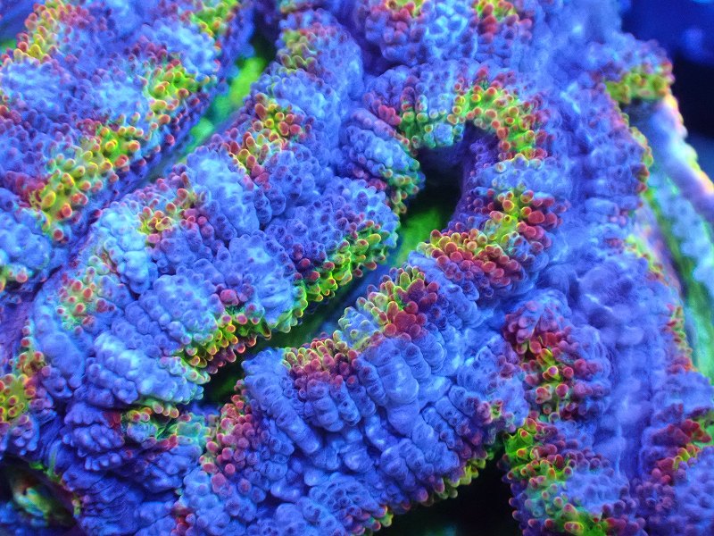 【サンゴまとめ買い割引き10%〜20%OFF対象商品】【サンゴ】【通販】【オーストラリア産】カクオオトゲキクメイシ(Ultra/Special Rainbow)(個体販売)No.21(生体)(サンゴ)