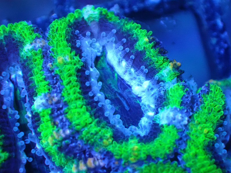 【サンゴまとめ買い割引き10%〜20%OFF対象商品】【サンゴ】【通販】【オーストラリア産】カクオオトゲキクメイシ(Ultra Grade/Green)(個体販売)No.107(生体)(サンゴ)