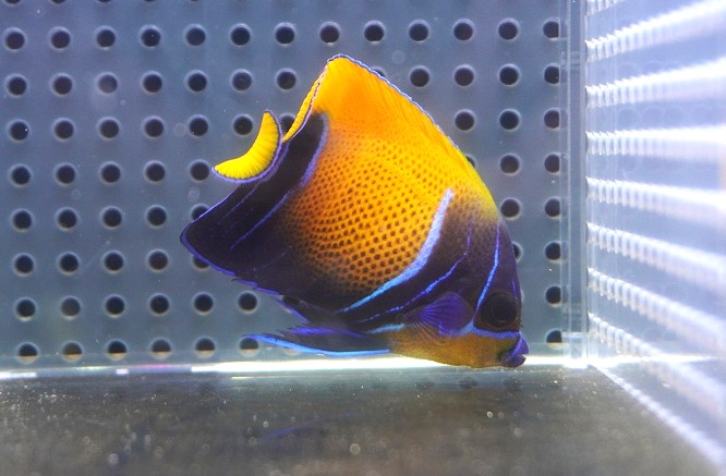 【海水魚・ヤッコ】【通販】人工飼料OK♪イナズマヤッコ(SMサイズ)(個体販売)(±6cm) No.6(生体)(海水魚)