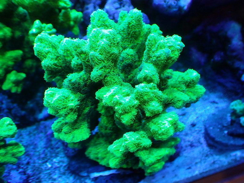 【サンゴまとめ買い割引き10%〜20%OFF対象商品】【サンゴ】【通販】ブリードエダイボサンゴ(メタリックグリーン)Mサイズ(個体販売)(±10cm)No.6(生体)(サンゴ)