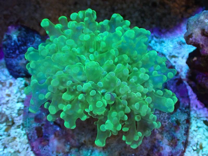 【サンゴまとめ買い割引き10%〜20%OFF対象商品】【サンゴ】【通販】ブリードタコアシサンゴ(メタリックグリーン)SMサイズ(個体販売)(±6-7cm)No.5(生体)(サンゴ)