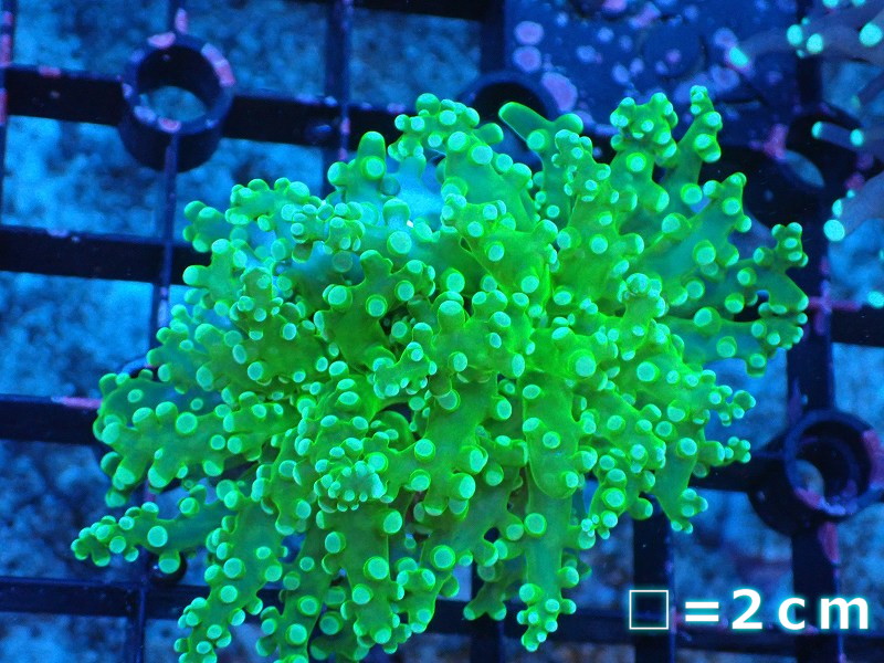 【サンゴまとめ買い割引き10%〜20%OFF対象商品】【サンゴ】【通販】コエダナガレハナサンゴ(メタリックグリーン/フラグ)(個体販売)No.1(生体)(サンゴ)