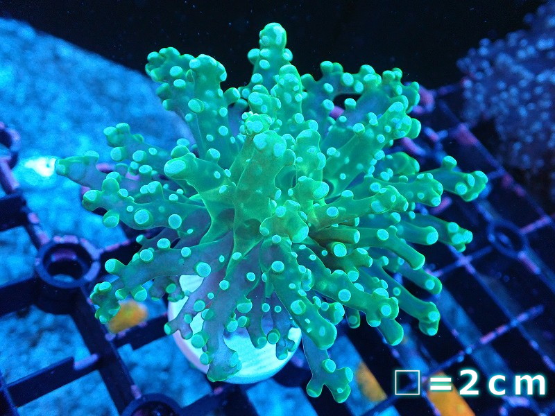 【サンゴ】【通販】コエダナガレハナサンゴ(メタリックグリーン/フラグ)(個体販売)No.17(生体)(サンゴ)