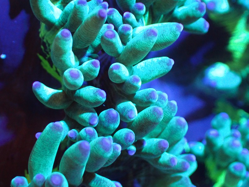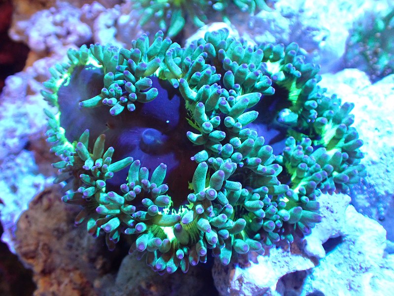 【サンゴまとめ買い割引き10%〜20%OFF対象商品】【サンゴ】【通販】トランペットコーラル(メタリック/パープルチップ)SMサイズ(個体販売)(±8-9cm)No.1(生体)(サンゴ)