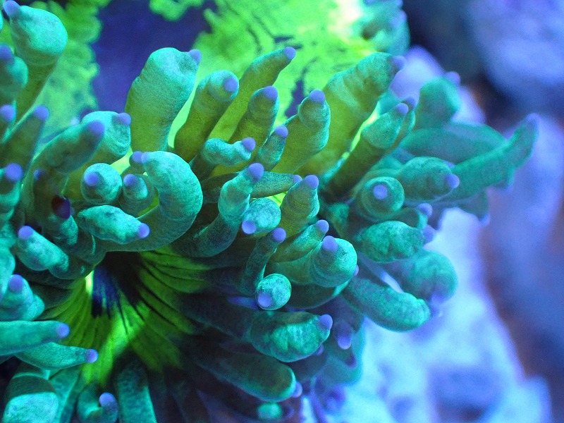【サンゴまとめ買い割引き10%〜20%OFF対象商品】【サンゴ】【通販】トランペットコーラル(メタリック/パープルチップ)SMサイズ(個体販売)(±8-9cm)No.3(生体)(サンゴ)