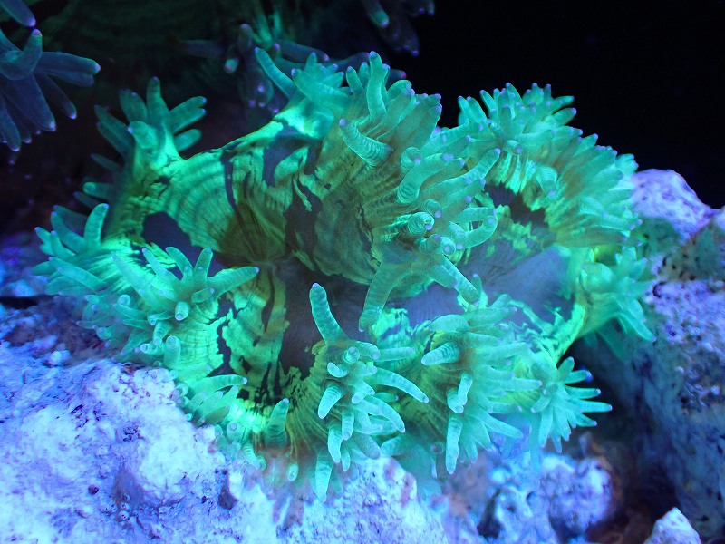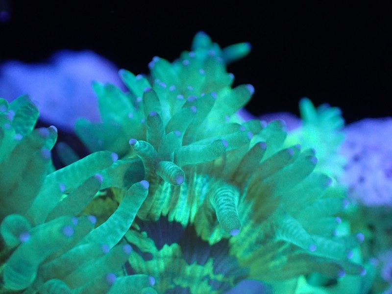 【サンゴまとめ買い割引き10%〜20%OFF対象商品】【サンゴ】【通販】トランペットコーラル(メタリック/パープルチップ)SMサイズ(個体販売)(±8-9cm)No.4(生体)(サンゴ)