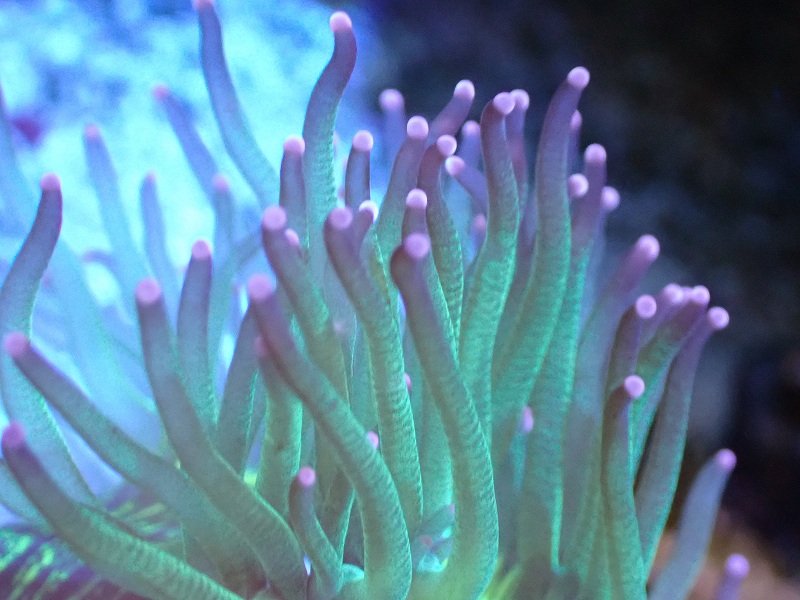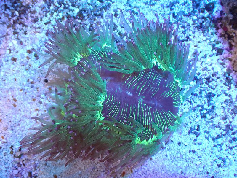 【サンゴまとめ買い割引き10%〜20%OFF対象商品】【サンゴ】【通販】トランペットコーラル(メタリック/ピンクチップ)SMサイズ(土台付き)(個体販売)(±8-9cm)No.5(生体)(サンゴ)