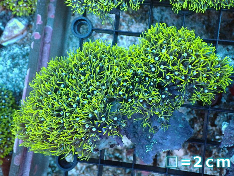 【サンゴまとめ買い割引き10%〜20%OFF対象商品】【サンゴ】【通販】スターポリプ(メタリックグリーン)Mサイズ(個体販売)(生体)(サンゴ)
