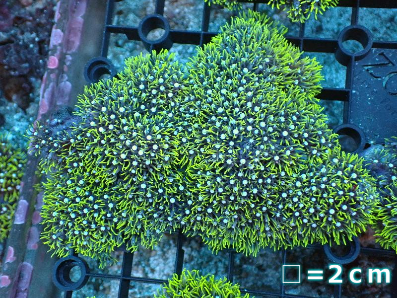 【サンゴまとめ買い割引き10%〜20%OFF対象商品】【サンゴ】【通販】スターポリプ(メタリックグリーン)Mサイズ(個体販売)(生体)(サンゴ)
