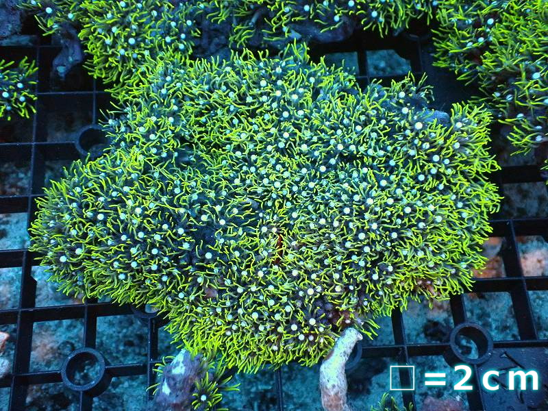 【サンゴまとめ買い割引き10%〜20%OFF対象商品】【サンゴ】【通販】スターポリプ(メタリックグリーン)Mサイズ(個体販売)(生体)(サンゴ)