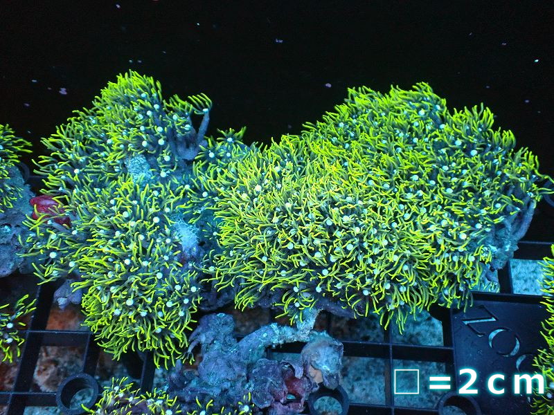 【サンゴまとめ買い割引き10%〜20%OFF対象商品】【サンゴ】【通販】スターポリプ(メタリックグリーン)Lサイズ(個体販売)(生体)(サンゴ)