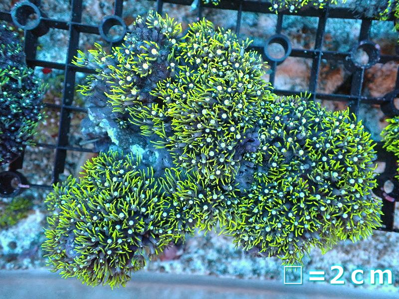 【サンゴまとめ買い割引き10%〜20%OFF対象商品】【サンゴ】【通販】スターポリプ(メタリックグリーン)Mサイズ(個体販売)(生体)(サンゴ)