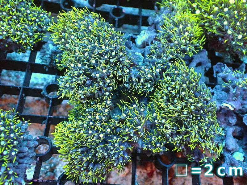 【サンゴまとめ買い割引き10%〜20%OFF対象商品】【サンゴ】【通販】スターポリプ(メタリックグリーン)Mサイズ(個体販売)(生体)(サンゴ)