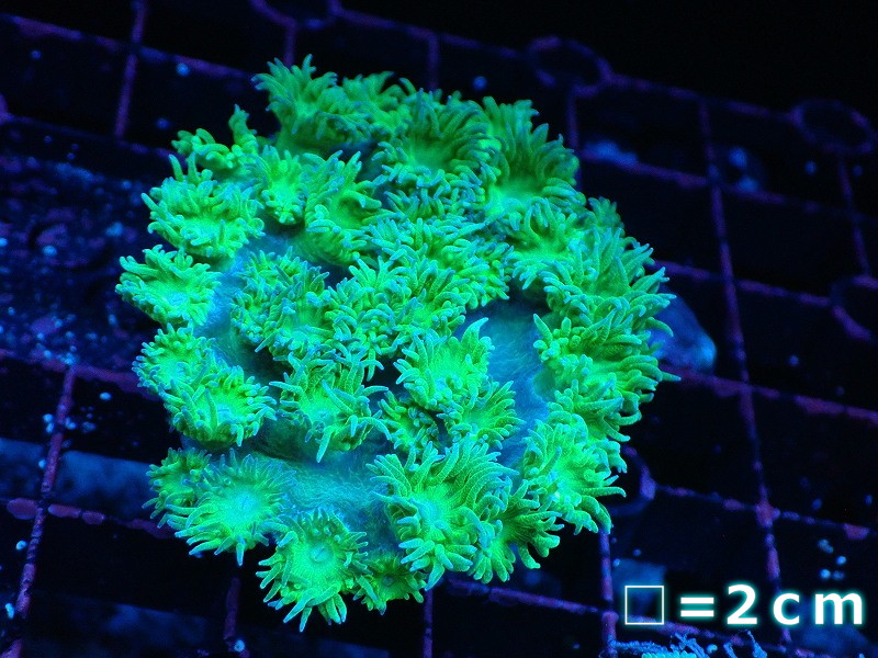 【サンゴまとめ買い割引き10%〜20%OFF対象商品】【サンゴ】【通販】スリバチサンゴ(メタリックグリーン)SMサイズ(個体販売)No.2(生体)(サンゴ)