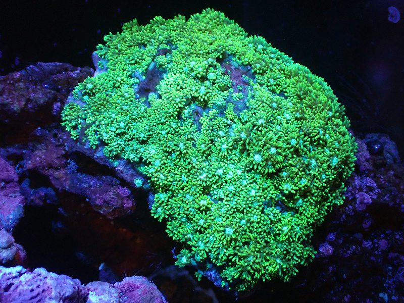 【サンゴまとめ買い割引き10%〜20%OFF対象商品】 【サンゴ】【通販】ハナガササンゴ(Metallic Green)(個体販売)(±9-10cm)No.5(生体)(サンゴ)