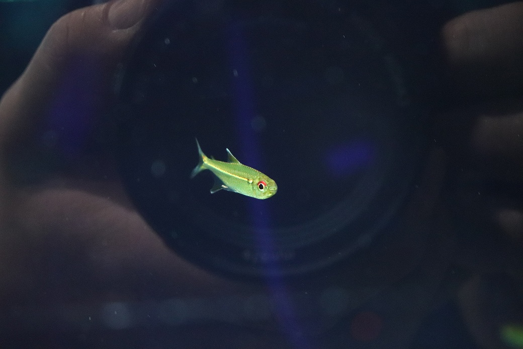 ホプロカラックスゴエッセイとして入荷しておりますが、実際にはホプロカラックスゴエッセイではなく、赤目金線の仲間でした。写真でもわかるように綺麗なグリーンカラーの体色になっております。まだまだ色揚がりはしますので、是非飼育を楽しんでください。