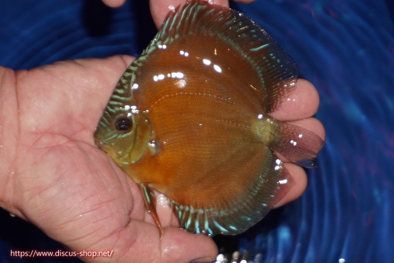 紅月の種親のウルトラグレード個体と同グレードの朱月を交配した新シリーズの生後半年個体。名のごとく全身の紅色の深い発色と抜群のブルーアーチ、どれをとっても一級品以上のポテンシャルを持っております。成長も早く健全で強い個体ですのであと半年飼い込めば恐ろしいポテンシャルを発揮するでしょう。B-HOUSE朱月、紅月とは、誰もが知る唯一無二のカリスマ、広島B-HOUSE倉津氏が20年以上の歳月をかけて作出した究極かつ唯一無二の完全オリジナルメイドインジャパンディスカス。単純にワイルドレッドディスカスのみを交配したのではなく全てのワイルドディスカスからの交配で作出されており、その赤の深さ、ブルーのラインや発色は意図して創られた究極のディスカスです。氏が話されていたブリーダーではなくデザイナー、アーティストという感覚で鱗の輝きや色質を考え作られたことはこのディスカスを見れば十分に納得いただけると思います。それほどに奥深く、長年交配され完成されたこのディスカスからは他にはないオーラを感じます。早々世の中に出回ることが無い大変貴重な個体です。