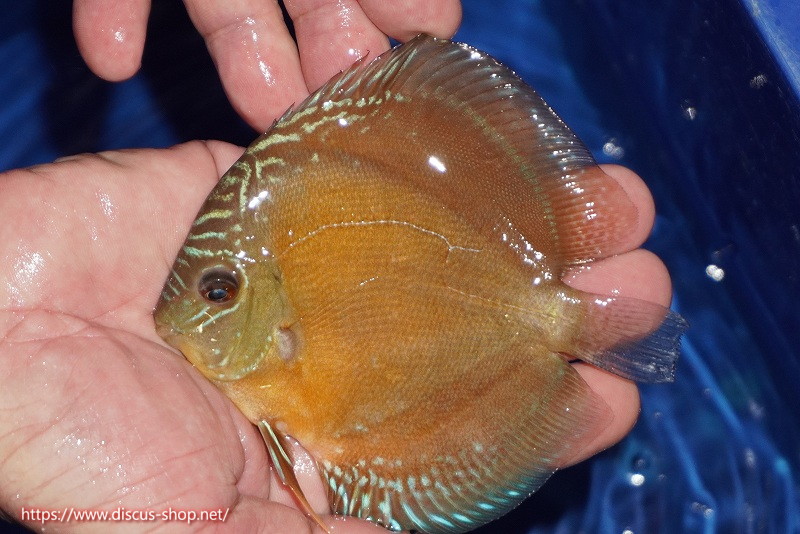 紅月の種親のウルトラグレード個体と同グレードの朱月を交配した新シリーズの生後半年個体。名のごとく全身の紅色の深い発色と抜群のブルーアーチ、どれをとっても一級品以上のポテンシャルを持っております。成長も早く健全で強い個体ですのであと半年飼い込めば恐ろしいポテンシャルを発揮するでしょう。B-HOUSE朱月、紅月とは、誰もが知る唯一無二のカリスマ、広島B-HOUSE倉津氏が20年以上の歳月をかけて作出した究極かつ唯一無二の完全オリジナルメイドインジャパンディスカス。単純にワイルドレッドディスカスのみを交配したのではなく全てのワイルドディスカスからの交配で作出されており、その赤の深さ、ブルーのラインや発色は意図して創られた究極のディスカスです。氏が話されていたブリーダーではなくデザイナー、アーティストという感覚で鱗の輝きや色質を考え作られたことはこのディスカスを見れば十分に納得いただけると思います。それほどに奥深く、長年交配され完成されたこのディスカスからは他にはないオーラを感じます。早々世の中に出回ることが無い大変貴重な個体です。