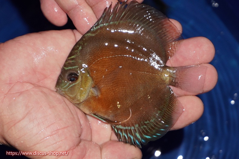 紅月の種親のウルトラグレード個体と同グレードの朱月を交配した新シリーズの生後半年個体。名のごとく全身の紅色の深い発色と抜群のブルーアーチ、どれをとっても一級品以上のポテンシャルを持っております。成長も早く健全で強い個体ですのであと半年飼い込めば恐ろしいポテンシャルを発揮するでしょう。B-HOUSE朱月、紅月とは、誰もが知る唯一無二のカリスマ、広島B-HOUSE倉津氏が20年以上の歳月をかけて作出した究極かつ唯一無二の完全オリジナルメイドインジャパンディスカス。単純にワイルドレッドディスカスのみを交配したのではなく全てのワイルドディスカスからの交配で作出されており、その赤の深さ、ブルーのラインや発色は意図して創られた究極のディスカスです。氏が話されていたブリーダーではなくデザイナー、アーティストという感覚で鱗の輝きや色質を考え作られたことはこのディスカスを見れば十分に納得いただけると思います。それほどに奥深く、長年交配され完成されたこのディスカスからは他にはないオーラを感じます。早々世の中に出回ることが無い大変貴重な個体です。