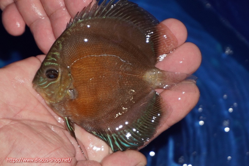 紅月の種親のウルトラグレード個体と同グレードの朱月を交配した新シリーズの生後半年個体。名のごとく全身の紅色の深い発色と抜群のブルーアーチ、どれをとっても一級品以上のポテンシャルを持っております。成長も早く健全で強い個体ですのであと半年飼い込めば恐ろしいポテンシャルを発揮するでしょう。B-HOUSE朱月、紅月とは、誰もが知る唯一無二のカリスマ、広島B-HOUSE倉津氏が20年以上の歳月をかけて作出した究極かつ唯一無二の完全オリジナルメイドインジャパンディスカス。単純にワイルドレッドディスカスのみを交配したのではなく全てのワイルドディスカスからの交配で作出されており、その赤の深さ、ブルーのラインや発色は意図して創られた究極のディスカスです。氏が話されていたブリーダーではなくデザイナー、アーティストという感覚で鱗の輝きや色質を考え作られたことはこのディスカスを見れば十分に納得いただけると思います。それほどに奥深く、長年交配され完成されたこのディスカスからは他にはないオーラを感じます。早々世の中に出回ることが無い大変貴重な個体です。
