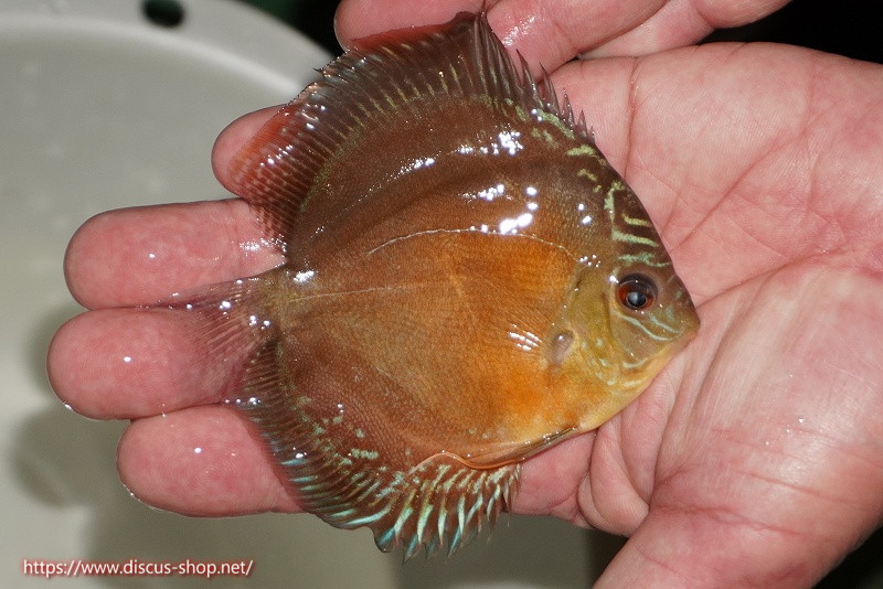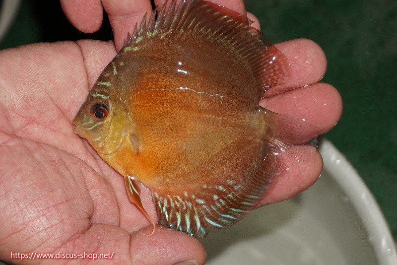 紅月の種親のウルトラグレード個体と同グレードの朱月を交配した新シリーズの生後半年個体。名のごとく全身の紅色の深い発色と抜群のブルーアーチ、どれをとっても一級品以上のポテンシャルを持っております。成長も早く健全で強い個体ですのであと半年飼い込めば恐ろしいポテンシャルを発揮するでしょう。B-HOUSE朱月、紅月とは、誰もが知る唯一無二のカリスマ、広島B-HOUSE倉津氏が20年以上の歳月をかけて作出した究極かつ唯一無二の完全オリジナルメイドインジャパンディスカス。単純にワイルドレッドディスカスのみを交配したのではなく全てのワイルドディスカスからの交配で作出されており、その赤の深さ、ブルーのラインや発色は意図して創られた究極のディスカスです。氏が話されていたブリーダーではなくデザイナー、アーティストという感覚で鱗の輝きや色質を考え作られたことはこのディスカスを見れば十分に納得いただけると思います。それほどに奥深く、長年交配され完成されたこのディスカスからは他にはないオーラを感じます。早々世の中に出回ることが無い大変貴重な個体です。
