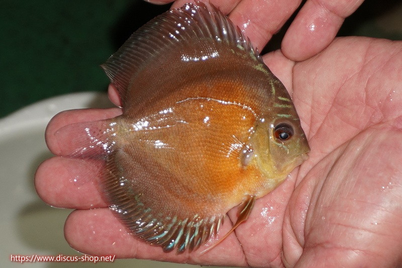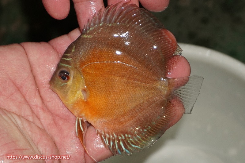紅月の種親のウルトラグレード個体と同グレードの朱月を交配した新シリーズの生後半年個体。名のごとく全身の紅色の深い発色と抜群のブルーアーチ、どれをとっても一級品以上のポテンシャルを持っております。成長も早く健全で強い個体ですのであと半年飼い込めば恐ろしいポテンシャルを発揮するでしょう。B-HOUSE朱月、紅月とは、誰もが知る唯一無二のカリスマ、広島B-HOUSE倉津氏が20年以上の歳月をかけて作出した究極かつ唯一無二の完全オリジナルメイドインジャパンディスカス。単純にワイルドレッドディスカスのみを交配したのではなく全てのワイルドディスカスからの交配で作出されており、その赤の深さ、ブルーのラインや発色は意図して創られた究極のディスカスです。氏が話されていたブリーダーではなくデザイナー、アーティストという感覚で鱗の輝きや色質を考え作られたことはこのディスカスを見れば十分に納得いただけると思います。それほどに奥深く、長年交配され完成されたこのディスカスからは他にはないオーラを感じます。早々世の中に出回ることが無い大変貴重な個体です。