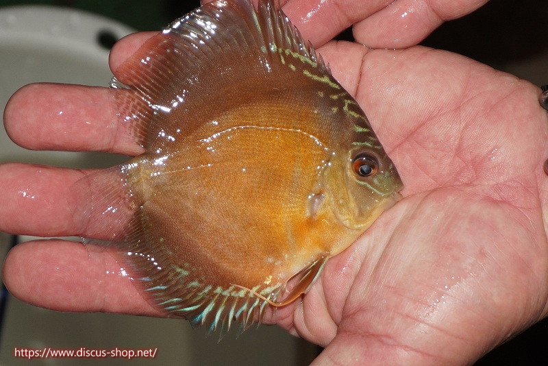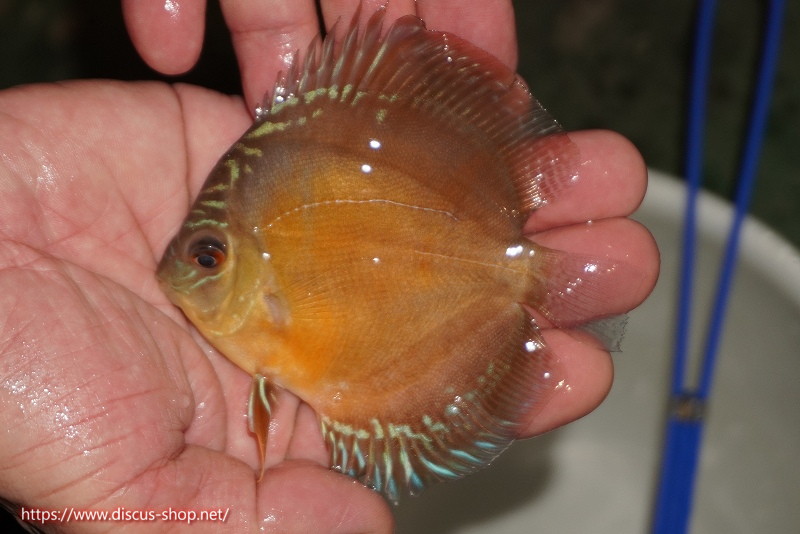 紅月の種親のウルトラグレード個体と同グレードの朱月を交配した新シリーズの生後半年個体。名のごとく全身の紅色の深い発色と抜群のブルーアーチ、どれをとっても一級品以上のポテンシャルを持っております。成長も早く健全で強い個体ですのであと半年飼い込めば恐ろしいポテンシャルを発揮するでしょう。B-HOUSE朱月、紅月とは、誰もが知る唯一無二のカリスマ、広島B-HOUSE倉津氏が20年以上の歳月をかけて作出した究極かつ唯一無二の完全オリジナルメイドインジャパンディスカス。単純にワイルドレッドディスカスのみを交配したのではなく全てのワイルドディスカスからの交配で作出されており、その赤の深さ、ブルーのラインや発色は意図して創られた究極のディスカスです。氏が話されていたブリーダーではなくデザイナー、アーティストという感覚で鱗の輝きや色質を考え作られたことはこのディスカスを見れば十分に納得いただけると思います。それほどに奥深く、長年交配され完成されたこのディスカスからは他にはないオーラを感じます。早々世の中に出回ることが無い大変貴重な個体です。