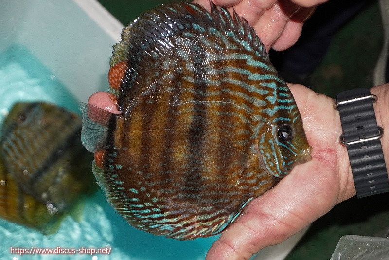 【30周年記念セール対象個体】【ワイルドディスカス】【通販】【究極のセンターバー 】ラーゴクミナ ロイヤル センターバー(金目)【個体販売】17cm(生体)クミナ産 [abf1-51222030]