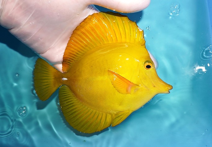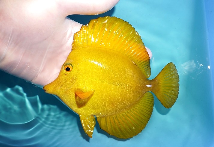 【ウィンターセール 10%OFF対象商品】 【海水魚・ハギ】【通販】状態良好♪ゴマハギ/イエロー(XLサイズ)(個体販売)(±15cm) (生体)(海水魚)