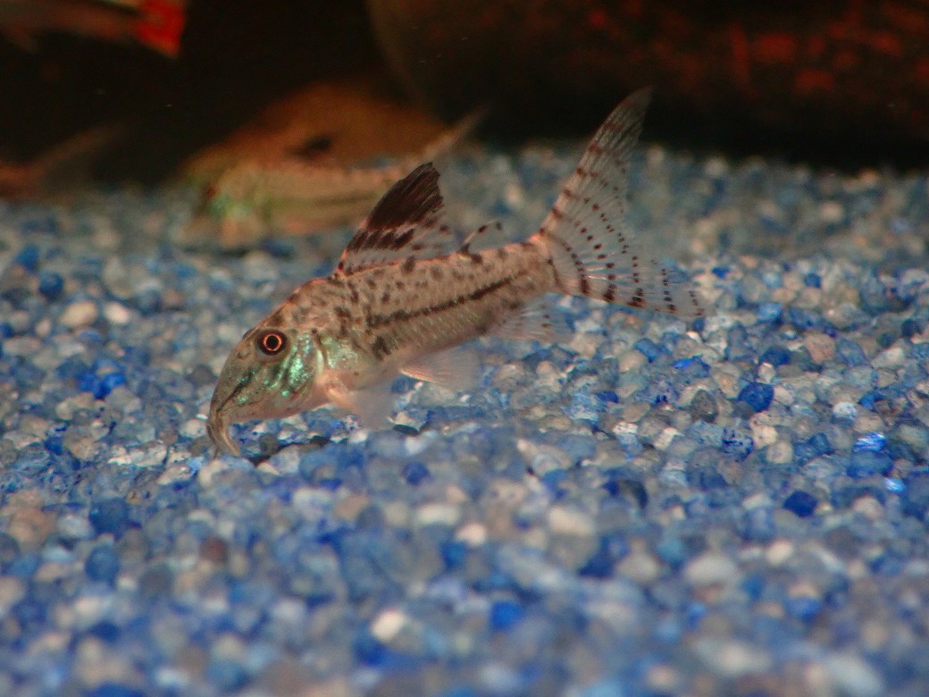全く何かわからないコリドラスが入荷致しました。ブリード個体とはなりますが、現地でも何かわからず、マニアの方も分からないとのことです。頬の青みが非常に青く、ボニータのようなスポットが体に入り、背びれもそれなりに大きいです。魅力的なコリドラスですが何か分からない!!是非大きくして見て下さい。